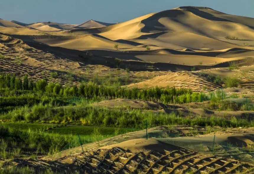 “项目开发模式先进,采用‘光伏+生态’模式开发,充分利用宁东煤矿塌陷区土地资源,因地制宜、科学高效利用煤炭备采区、采空区、沉陷区及荒山荒坡,实现矿区‘光伏+生态’综合治理,构建绿色低碳循环经济体系。”国能宁夏电力公司相关负责人介绍。