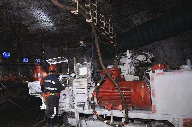 然而,对于石圪台煤矿来说,2022年的挑战还不止于此。石圪台煤矿是神东为数不多的水文地质类型复杂矿井,在采掘过程中受到厚松散层水和老窑老空水的威胁。面对复杂的水害问题,石圪台煤矿副总工程师孙长斌有着精细的准备:“我们将松散层水按照一面一策和综合治理划分开来,用时间换空间的条件来改变这个灾害的影响。针对老空老窑水的治理,我们主要是按照7种防治措施和五位一体的治理措施,保证查全、查清、放净、验清,达到了一个安全保障。同时,设立了专门的探放水队伍,配备28名队员,也配备了国内最先进的智能自动钻机和千米定向钻机、物探设备,有最先进的瞬变电磁仪和坑透仪。”