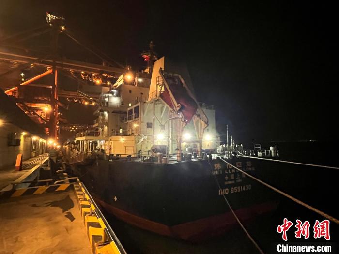 中新网莆田12月18日电 (吴志 林孟)18日清晨,从印度尼西亚运载近7万吨煤炭而来的巴拿马籍“翊利”轮,在莆田出入境边防检查站执勤一队监护下,停靠在福建省莆田市东吴港区国投10号泊位卸载货物。