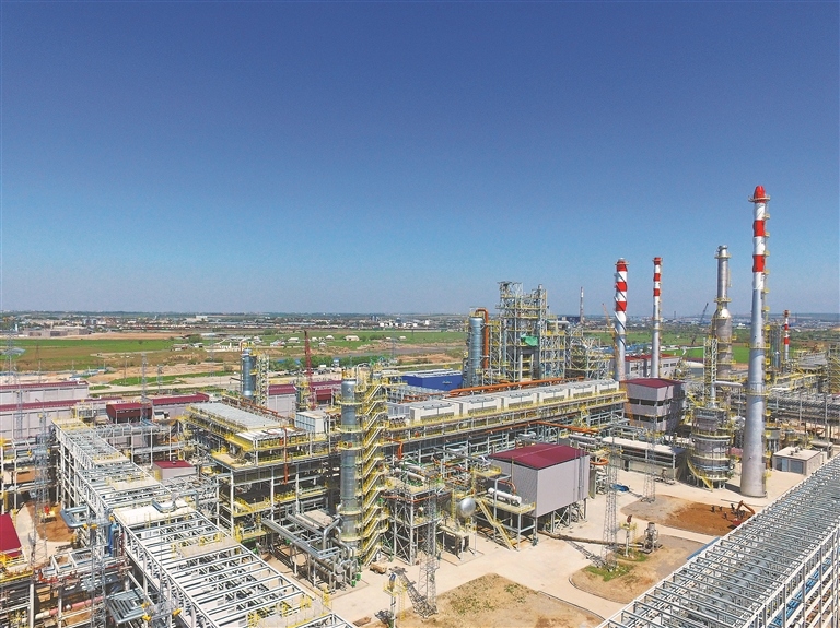 奇姆肯特炼油厂是中国石油与哈萨克斯坦国家石油天然气公司的合作项目,也是“一带一路”中哈能源合作的重点项目。图为该厂重油催化裂化装置全景。中亚俄罗斯公司 供图