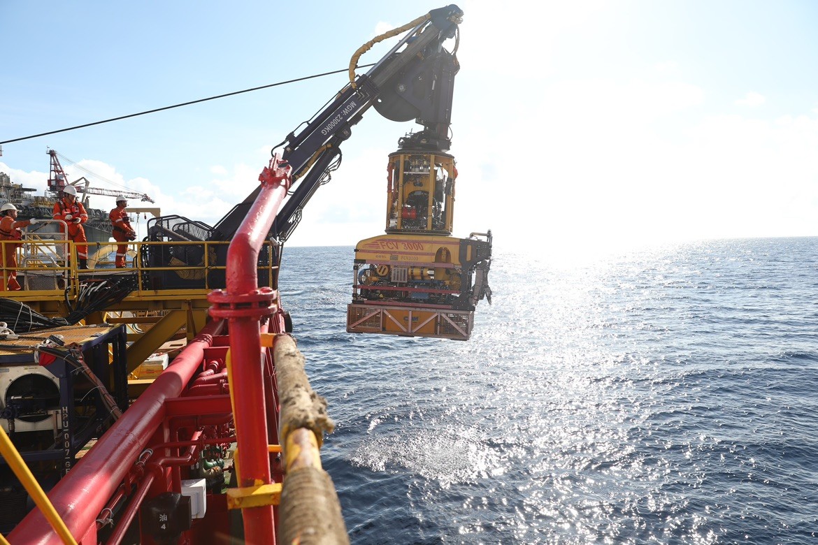 ROV(水下机器人)辅助进行深水钻井作业 黄浩/摄