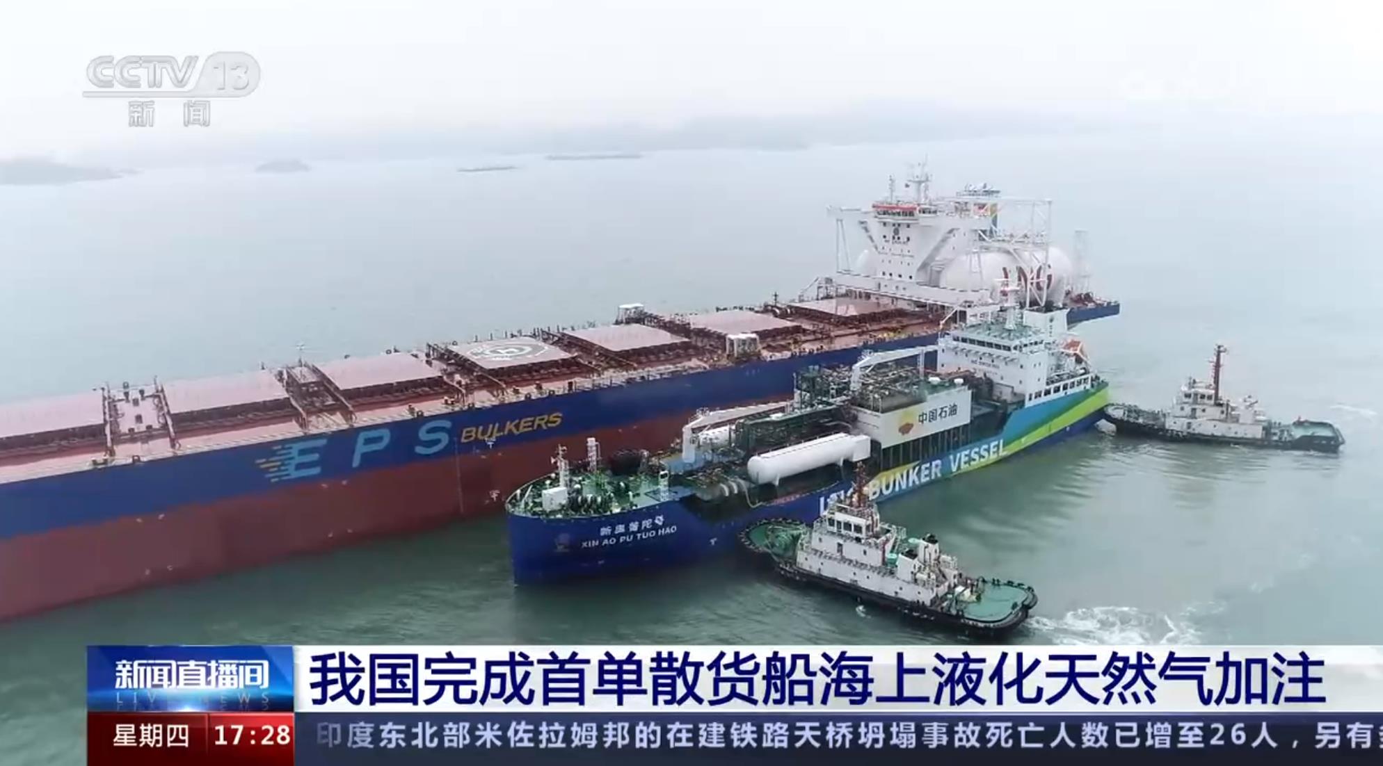央视网消息:近年来,全球液化天然气船舶数量快速增长,我国液化天然气船舶加注产业快速发展。今天(8月24日),在舟山港,国内首单港口外锚地大型散货船“船对船”液化天然气加注作业顺利完成,这标志着我国在液化天然气加注区域和船型多样化取得双突破。