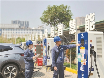 广东中山东区供电分局工作人员在中山东区供电分局智慧能源示范项目充电站开展用电检查。