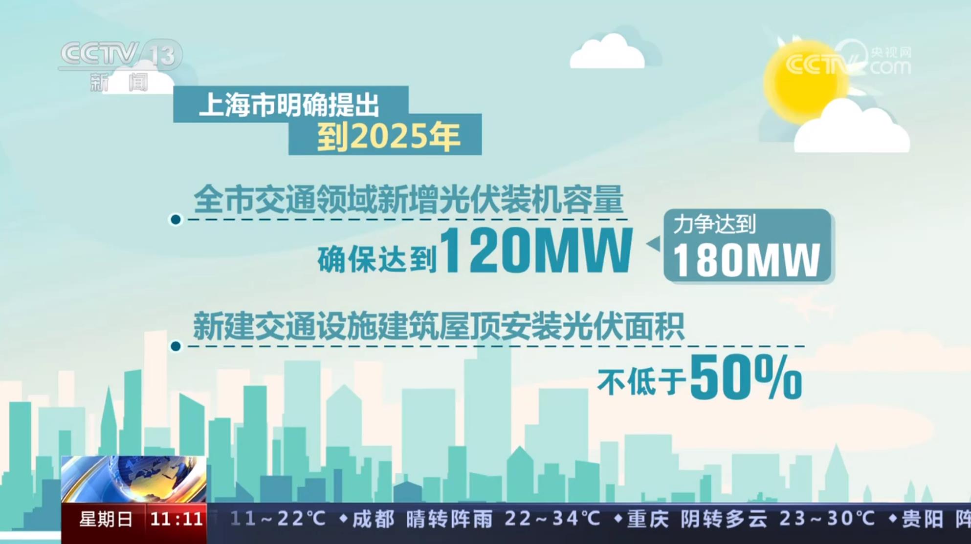 今年以来多地加快推进新能源与交通融合发展。上海市明确提出到2025年全市交通领域新增光伏装机容量确保达到120MW,力争达到180MW,新建交通设施建筑屋顶安装光伏面积不低于50%。江苏提出到2025年建设完成10个绿色交通示范县(市、区)区域性项目、40个绿色交通主题性项目。山东发文明确要求加快绿色交通基础设施建设,推进绿色公路、绿色铁路、绿色港口和绿色机场建设,推动交通网、能源网融合发展。