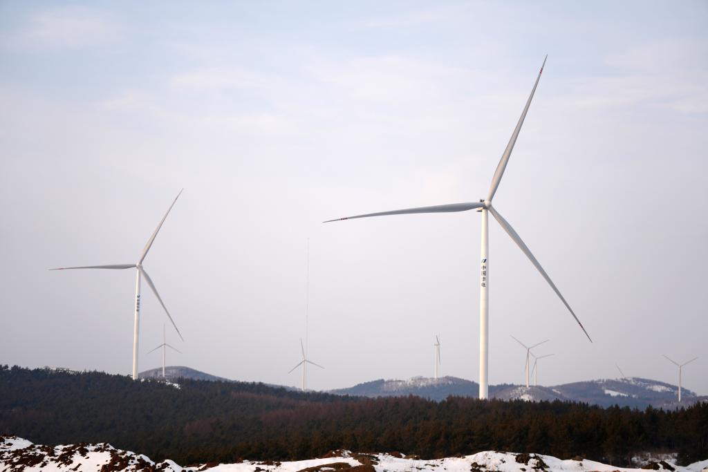 12月5日拍摄的华电黑龙江区域哈尔滨依兰鸡冠山风电场四期项目一处运行的风电机组。新华社记者王建威 摄