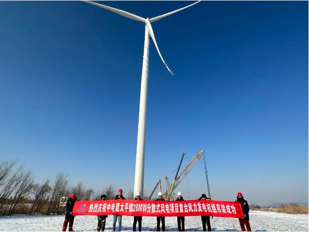12月23日上午,中电建太平镇28MW分散式风电项目,圆满完成首台风机吊装,为实现项目全容量并网发电目标奠定了坚实的基础。