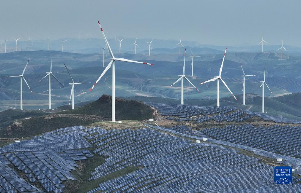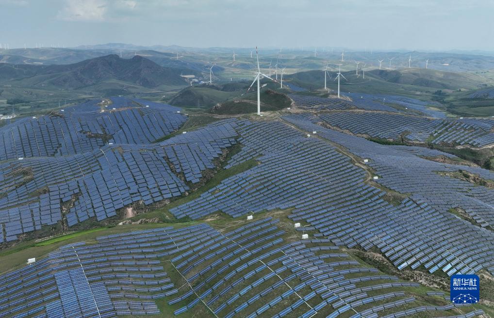 9月2日拍摄的承德市丰宁满族自治县万胜永乡万胜永村附近的一处风光互补发电场(无人机照片)。 近年来,河北省承德市大力推进清洁能源开发利用,推动风电和光伏发电等新能源项目建设,助力绿色低碳发展。截至目前,承德市风电、光伏发电等清洁能源并网装机容量达1121.56万千瓦,约占电源总装机容量的86.4%。 新华社记者 杨世尧 摄